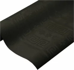 Merkloos Tafelpapier Op Rol Damast 120cm X 8 Mtr. Uni Zwart.