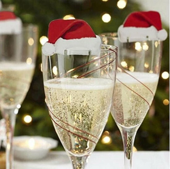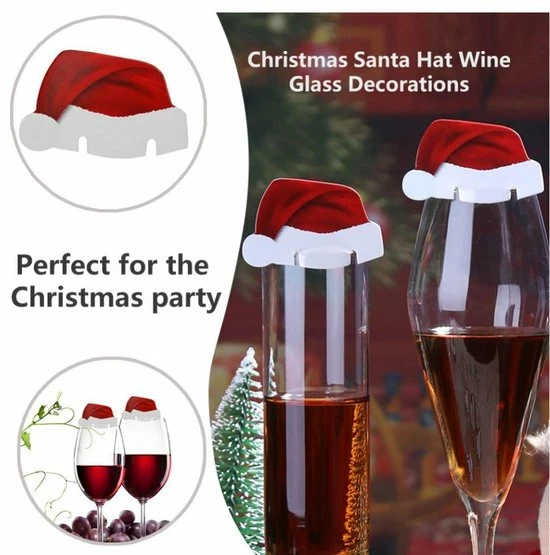Met deze kerstmuts versiering voor glazen maakt u het kerstdiner helemaal compleet!