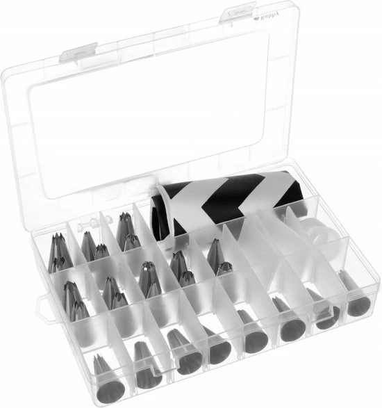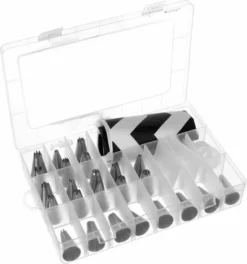Deze set heeft maar liefst 24 verschillende spuitmondjes in de set, waardoor je gemakkelijk en snel verschillende decoraties op desserts en meer kunt toveren .