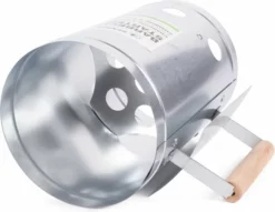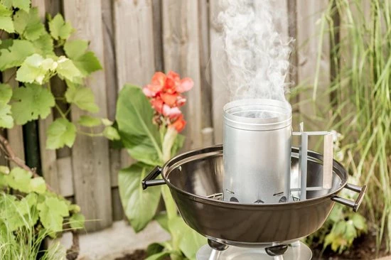 Het werkt heel eenvoudig. Je doet een paar aanmaakblokjes onder de koker of wat krantenpapier, vult de cilinder met houtskool of briketten en je steekt de aanmaakblokken/ kranten aan. Binnen zo’n 10 à 15 minuten giet je de houtskool of briketten uit de koker en verdeel je ze gelijkmatig, waarna je BBQ van start kan.