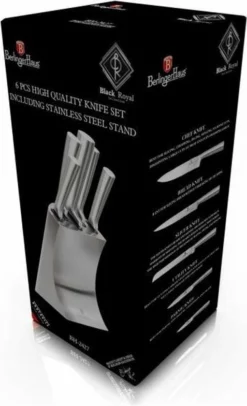 Berlinger Haus Premium roestvrij staal is uw ticket om gemakkelijk te koken. Voor het koken in uw huis of restaurant biedt de set een volledig assortiment keukenmessen voor al uw kookbehoeften.