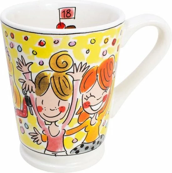 Word je binnenkort 18 of ken je iemand die binnenkort 18 wordt? Verras diegene dan met deze feestelijke Blond Amsterdam 18 beker! Op de beker staat de jarige met al haar vriendinnen en confetti regen afgebeeld. Deze beker zal zeker een leuke herinnering zijn aan de 18e verjaardag.