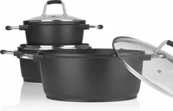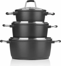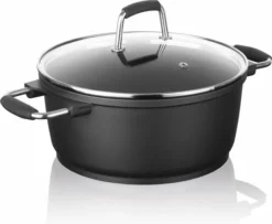 GASTE KWALITEIT – De Bratoni kookpot maakt koken in een nieuwe dimensie mogelijk. De pan van 2,5 liter heeft een zeer hoogwaardige gietaluminium kwaliteit en is voorzien van een originele ‘Greblon’ antiaanbaklaag. De pan is dus krasbestendig en maakt het mogelijk bijna zonder vet en olie te koken.