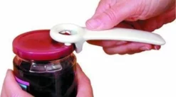De originele ’s werelds makkelijkste pottenopener. Met een kleine inspanning laat u het vacuñm uit de pot ontsnappen waardoor het deksel gemakkelijk te openen is. De JarKey heeft geen scherpe randen of punten en is extreem duurzaam. Aanbevolen door diverse reuma fondsen en wereldwijd gepatendeerd. Winnaar van diverse prijzen. Kleuren zijn variabel.