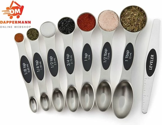 Meet gemakkelijk, nauwkeurig en snel alle soorten vaste en vloeibare ingrediënten met deze Luxe Maatlepelset van Dappermann voor koken en bakken. Klaar om jouw baksels en gerechten perfect op smaak te brengen zonder te knoeien?