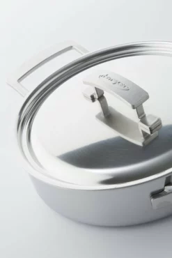 Het solide 5-lagenmateriaal tot aan de rand verzekert je van goede warmtespreiding en temperatuurcontrole. Een bijzonder handige hulp bij stoven, smoren en braiseren. Ideaal op gas, doordat de wanden van de kookpot de restwarmte van de gasvlam ook mee opnemen, maar evenzeer bijzonder geschikt voor alle andere kookplaten, ook inductie. Bovendien kan deze pot van eender welk fornuis recht de oven in. Om de inhoud rustig verder te laten garen of gewoon om warm te houden.