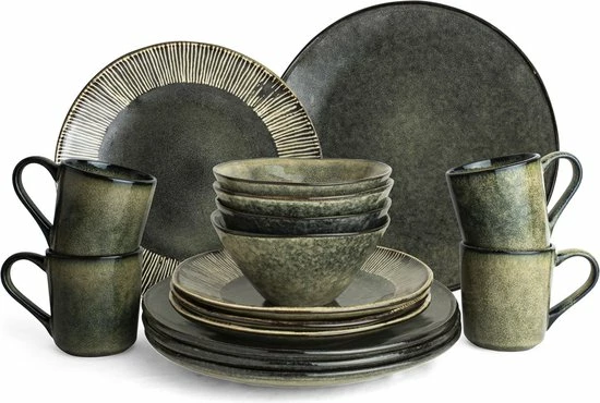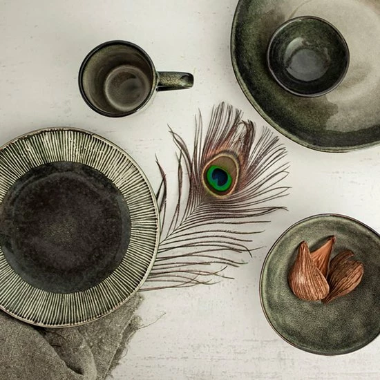 De pure uitstraling van de woudgroene serviesset van Organic by Dutch Rose Amsterdam maakt van je eettafel een waar feestje. Met dit 16-delige servies haal je meteen alle essentieumlle benodigdheden in huis voor ontbijt, lunch of diner voor vier personen.