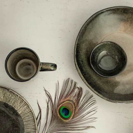 Je kunt de serviesset natuurlijk aanvullen met bekers, kommen, schalen en diepe borden. Alle onderdelen van de serviesset zijn gemaakt van stoneware en kunnen daarom gewoon in de vaatwasser en magnetron.