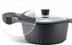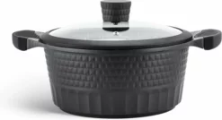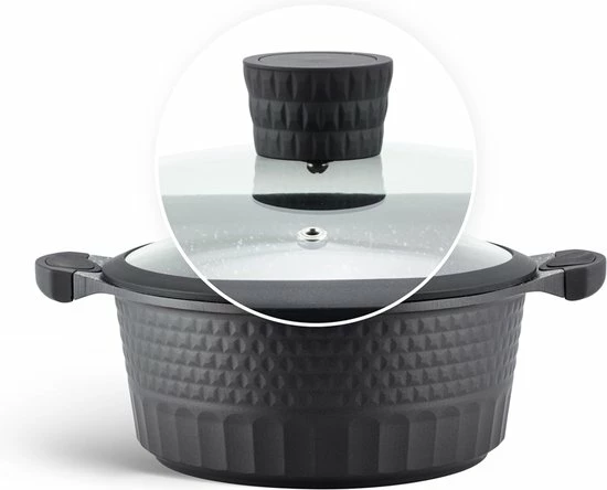 - Kookpan met glazen deksel: inhoud 6,7 liter, diameter 28 cm