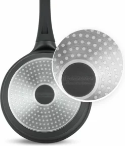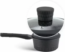 De 3 lagen marmer bodem is de beste anti-aanbaklaag die je je kunt wensen. Het materiaal is tot wel 7 x sterker dan een traditionele anti-aanbaklaag en eten kan niet aankoeken. Je kunt daardoor zonder of met een klein beetje olie of boter gezonde maar ook lekkere gerechten op tafel zetten. Darnaast zijn de pannen door de marmeren lagen veel makkelijker met de hand of in de vaatwasser schoon te maken. De marmeren lagen behouden hun klaar, zijn minder kwetsbaar, distribueren warmte perfect en bevatten absoluut GÉÉN gifitige stoffen. Wat wilt de professionele of hobby kok nog meer?