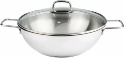 - Deze wokpan Ø32 cm is energiebesparend dankzij de kapsel-sandwichbodem en heeft een glazen deksel met stoomventiel – hittebestendig tot 160 °C