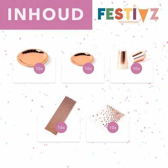Geef je feestje de perfecte uitstraling met de rose goud wegwerp servies set van Festivz!