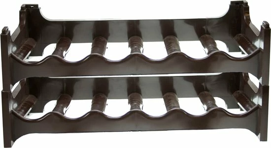 Kunststof staand wijnrek/flessenrek, geschikt voor 6 wijn flessen. De rekken is stapelbaar tot max. 3 stuks op elkaar. Materiaal: Kunststof. Afmeting: 60,5 x 24,5 x 12,5 cm.