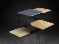 Gusta serveerset 21 x 21 x 21cm. Elegante metalen vierkante serveertoren met 3 uitschuifbare planken en een deksel van leisteen.