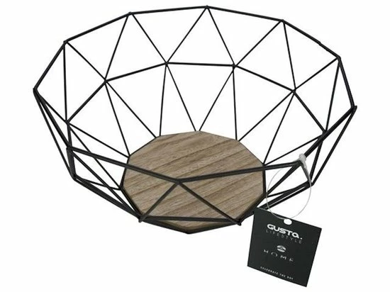 Gusta Fruitmand zwart. Fruit op tafel is voor iedereen een vrolijke binnenkomer. De mooie en felle kleuren van het fruit komen perfect tot hun recht in de zwarte fruitmand van Gusta. De schaal is ruim en er passen daardoor diverse stukken fruit in. Materiaal: Metaal / Hout.