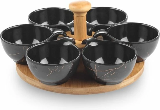 | Verpakkingsinhoud | Hapjes, tapas, Draaiplateau, hout, met, melamine, schaaltjes. |