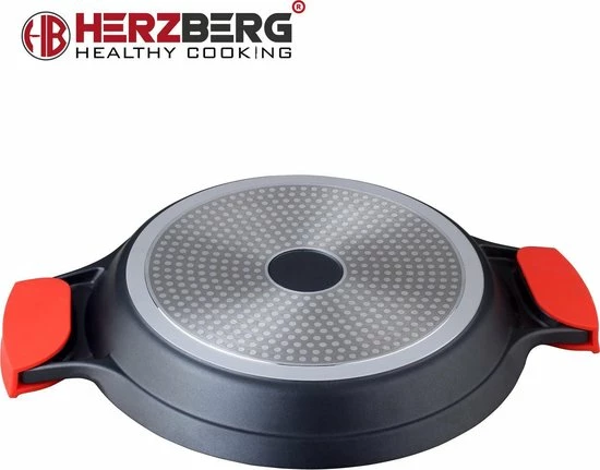 De Herzberg HG-7132PP is een paellapan van 32 cm die plaats biedt aan maximaal 8 personen. Deze paellapan is gemaakt van duurzaam gegoten aluminium en heeft een marmercoating die ongekende antikleefprestaties levert zonder het risico van blootstelling aan deze controversiële chemicaliën. Deze marmeren coating is PFOA-vrij en hard genoeg om krassen te weerstaan. De handgreep is volledig geïntegreerd en werd geleverd met een zachte, hittebestendige en afneembare siliconen handgreep. De aluminium behuizing heeft een gemagnetiseerde basis voor gebruik met inductiekachels voor snelle warmteoverdracht. De volledige constructie van deze paellapan is opmerkelijk omdat hij snel opwarmt en een perfecte warmteverdeling heeft en geen hete plek en ongelijke verbranding, alleen perfect gekookte paella. Deze basis op de samengestelde bodem kan ook worden gebruikt op verschillende warmtebronnen, waaronder gas, elektrisch, keramisch, oven, kampvuur, grill, oven en zelfs in inductiekookplaat. Het is gemakkelijk schoon te maken vanwege zijn anti-aanbak mogelijkheid en zelfs vaatwasserbestendig. Braad, bak, bak, gril, stoof, bak of grill met deze veelzijdige kookpan en geniet van de geweldige toevoeging aan uw kookgerei.