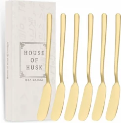 Met onze House of Husk elegante design botermessen maakt u het feest op tafel. Niet alleen om boter mee te snijden maar ook leuk om smeerbare salades, zachte kazen, pates en tapanades mee te serveren, wanneer u een gezellige borrel organiseerd. Het het simpele design en elegante kleuren kunt u uw tafel afstemmen naar uw stijl, matchen met uw bestek of serveerschalen.