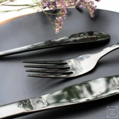 Moderne bestekset, zwart glanzende metallic look, unieke bestekset maakt uw tafelaankleding elegant en anders.