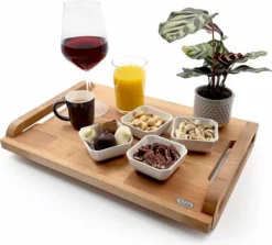 De wijze waarop de handgrepen zijn gemaakt zorgt ervoor dat het dienblad verhoogt staat wanneer je deze neerzet, ook is het hierdoor aan beide kanten te gebruiken. Het dienblad heeft een normaal formaat van 40 bij 29,5 cm, ideaal voor dagelijks gebruik.