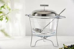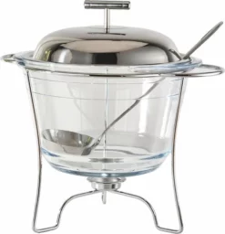 Deze glazen soepterrine is ideaal voor het serveren van soepen. De soepterrine heeft een warmtehouder, zodat u de soep warm kan houden. Deze soepterrine is ook geschikt om als cadeau te geven. Ook ideaal te gebruiken op feestjes en partijen