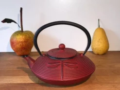 Zeer kwalitatief mooie gietijzeren theepot in het rood met een libelle reliëf, van het merk LEIJZER Design. De theepot bevat een roestvrijstalen theefilter, voor het zetten van verse thee of andere dranken. De theepot is van binnen zwart geëmailleerd, dit zorgt ervoor dat uw thee of andere dranken lang warm blijven. De deksel van de theepot is los afneembaar, evenals het RVS theefilter.