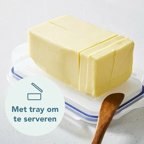 Zoek je een oplossing voor het bewaren van je boter en wil je geen losse wikkels meer in de koelkast? Bewaar je (room)boter in deze speciale LOCK&LOCK botervloot met deksel. De extra, losse tray is te gebruiken als botervlootje op tafel, draai het bakje om en serveren maar! Uiteraard ook geschikt om bijvoorbeeld fruit of groente in te bewaren of mee te nemen als snackdoosje!