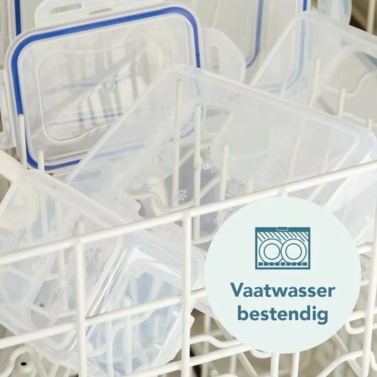 De vershoudbakjes zijn gemaakt van Polypropyleen, een veilig materiaal voor de gezondheid en vrij van BPA