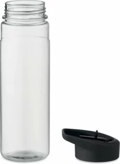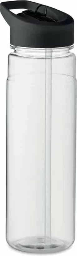 Blijf de hele dag gehydrateerd met deze handige zwarte drinkfles gemaakt van RPET! De drinkfles heeft een polypropyleen flip-top deksel met geïntegreerd rietje, waar gemakkelijk uit gedronken kan worden. Dit maakt de waterfles ideaal om te gebruiken tijdens sportactiviteiten. De fles heeft een inhoud van 650 ml en is niet geschikt voor koolzuurhoudende dranken.