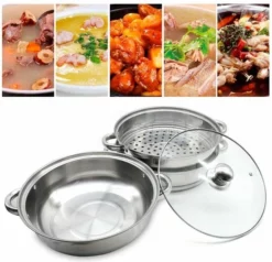 1 roestvrijstalen steamer + pan + glazen deksel