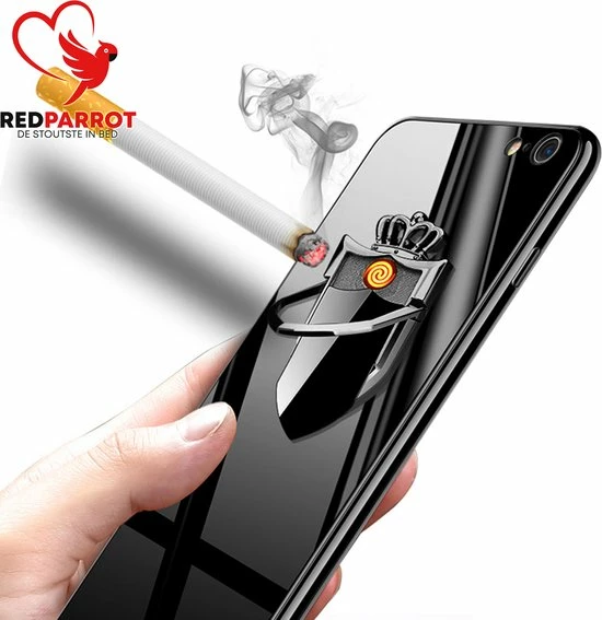Luxe elektrische aansteker. USB oplaadbaar en te bevestigen op telefoon. Met deze aansteker hoef je je nooit zorgen te maken, je hebt altijd een aansteker bij je omdat hij bevestigd is op je telefoon. Een luxe uitvoering met een draagkracht van 10 kilo, waardoor hij stevig bevestigd is.