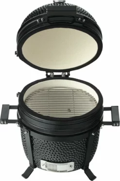 The Meat Boys Compact is een compacte kamado voor kleine groepen. Een kamado geeft je de pure smaak van een houtskool vuur. Onze Meat Boys kamado wordt compleet geleverd inclusief afdekhoes en platesetter. Het is een compact model wat weinig ruimte in beslag neemt. Met de Meat Boys Compact heb je ruimte om te grillen voor wel 5 personen en door de bijgeleverde platesetter kan je hem op verschillende manieren gebruiken. Door de kwaliteit van het keramische materiaal geniet je echt van top kwaliteit voor een scherpe prijs! De BBQ heeft een hoogte van 60 cm en een doorsnede van 38cm.
