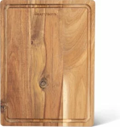 Deze snijplank is multifunctioneel en kan aan beide kanten gebruikt worden. Wij gebruiken hem voornamelijk voor het snijden van ons vlees! Op deze snijplank zit aan de ene zijde een sap-kuil waar de sappen van het vlees worden opgevangen.