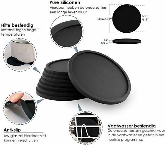 De zwarte siliconen onderzetters voor glazen van Mr. Valued komen goed van pas in ieder huishouden.