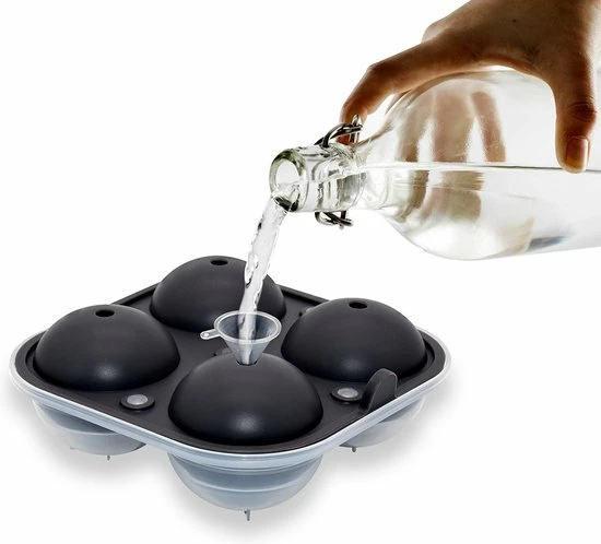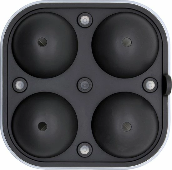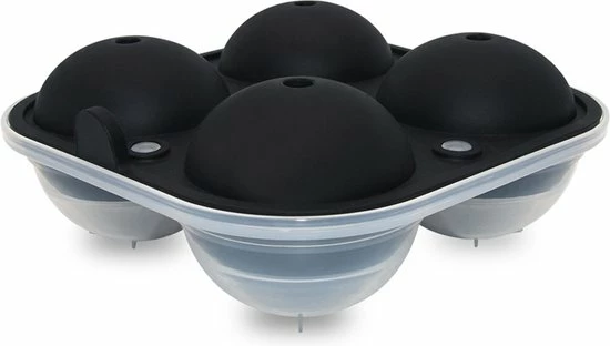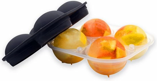De set bestaat uit een ijsballenhouder met deksel voor 4 grote ijsvormen van 6 cm.