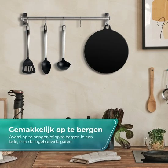 De afmeting van de inductiebeschermer is 22 centimeter breed en slechts 1 milimeter dik. Door dit formaat neemt het weinig opslagruimte in beslag in de keuken. De inductiebeschermer is voorzien van hanggaten, waardoor je het gemakkelijk kunt ophangen. Het is tevens ook niet eens een eyecatcher in jouw keuken.