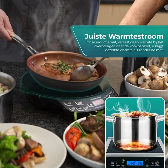 De inductiebeschermer biedt bescherming tot 230 graden aan zowel de inductiekookplaat als aan de (dure) pannen.