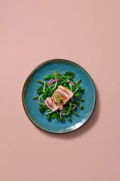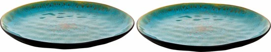 De serie Lotus is met haar spectaculaire turquoise kleur een echte eyecatcher. Op deze borden wordt ieder gerecht een kleurensensatie! De donkere matte afwerking aan de buitenkant geeft de serie nog een rustiek tintje. Dit prachtige platte bord is gemaakt van het materiaal stoneware en is oven- en magnetronbestendig tot een temperatuur van 220℃. Na gebruik kan hij gereinigd worden in de vaatwasmachine. Deze set bestaat uit 2 dinerborden met een diameter van 27,5 cm.