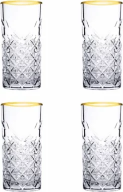 Stijlvolle frisdrank- en waterglazen van 45 cl uit de glaswerk serie Timeless. Alle glazen uit deze serie zijn voorzien van een decoratie van geslepen glas. Timeless zorgt voor een trendy, vintage look op tafel. Met deze retro 4-delige glazenset brengt u de sfeer van vroeger terug bij het uitschenken van uw dranken. De glazen zijn daarnaast ook vaatwasserbestendig.