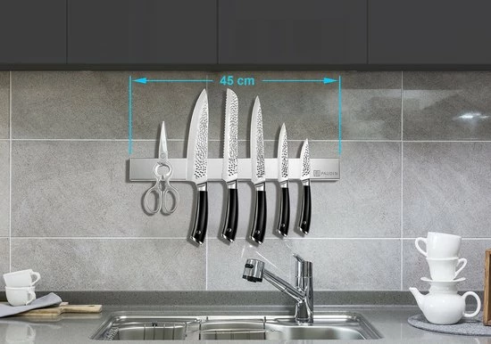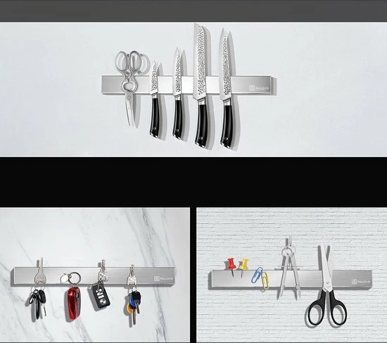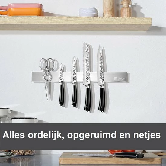 Heeft u ook messen die te mooi zijn om ze in een lade te stoppen? Wilt u überhaupt goed zorg dragen voor uw messen en ze niet beschadigen? Hang dan uw (Paudin) messen op op deze extra lange extreem sterke magneetstrip en hou uw messen scherp en georganiseerd. Een echte blijkvanger in uw keuken.