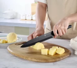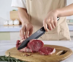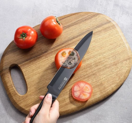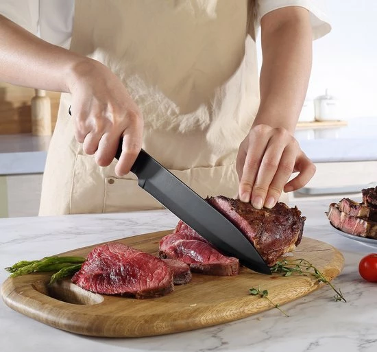 Het lemmet en het holle handvat zijn uit één stuk gemaakt. Ze behouden de perfecte balans tijdens het snijden en maakt u zich vooral geen zorgen meer over de verborgen ziektekiemen aangezien er nergens plaatsen zijn waar deze zich kunnen ophouden en vermenigvuldigen. Het handvat is ergonomisch ontworpen voor een comfortabele grip, veiliger en efficiënt snijden.