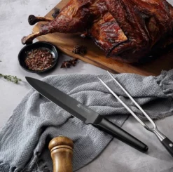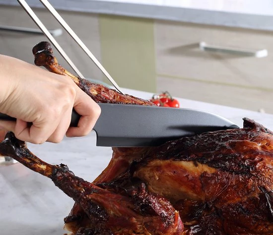 Een vleesmes is te herkennen aan het lange en smalle lemmet. Door de grote lengte kan er een lange rechte snijbeweging worden gemaakt wat mooie nette plakken geeft. Daardoor is een vleesmes ook bij uitstek geschikt om alle soorten vlees te verwerken, inclusief borststuk, varkenshaas, rollades, kalkoen, ham, gebraden en bereid vlees maar zelfs ook gerookte zalm en tonijn. Sterker nog, het mes is ideaal om te gebruiken als sushi / sashimi mes. Doordat dit mes uit 1 stuk vervaardigd is, is er geen enkele plaats meer over waar bacteriën zich kunnen nestelen en voortplanten.