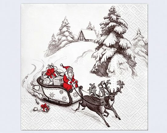 Twee pakjes met in totaal 40 servetten met leuke opdruk van kerstman op arreslee.
