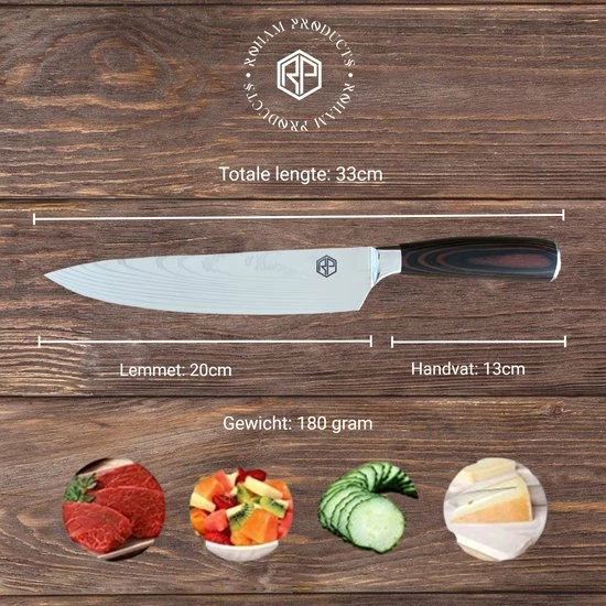 Het ideale mes voor elke keukenliefhebber: het professionele RP koksmes van Roham products. Door het comfortabele en ergonomische design wordt koken een stuk leuker én makkelijker. Of je nu graag in de keuken staat voor een gezonde salade, een makkelijke maaltijd of een mooi stuk vlees voor op de BBQ; een professioneel koksmes is onmisbaar!