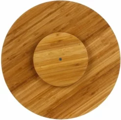Draaiplateau/serveerplank. Dit draaiplateau is ideaal voor het serveren van hapjes, gebakjes of taart, maar is ook uitermate geschikt voor het maken van een kaasplankje/borrelplankje met tapas. Afmeting: ca. 35 x 35 x 3 cm. Materiaal: bamboe. Niet vaatwasserbestendig. Tip: Om de kwaliteit van de plank te behouden, is het aan te raden deze te bedekken met een beetje plantaardige olie.