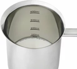 ✅ Groot volume van 400 ml met meetschaal – voor meerdere kopjes of een grote kop opgeschuimde melk. Eenvoudig afmeten met geïntegreerde schaal. Zo kan tot 120 ml vloeibare melk worden opgeschuimd voor maximaal 2-3 cappuccino.