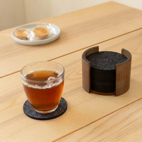 Vilt heeft namelijk een absorberende werking, erg handig als de onderkant van je drinken vochtig is. De onderzetters zijn gemaakt van premium kwaliteit vilt, hierdoor zullen de vilten onderzetters hun kwaliteit behouden. De kwaliteit en stevigheid van de onderzetters staat garant voor een lange levensduur. Dit nieuwe model beschikt nu over 10 vilten onderzetters, zo heb je er altijd voldoende als er visite langskomt!