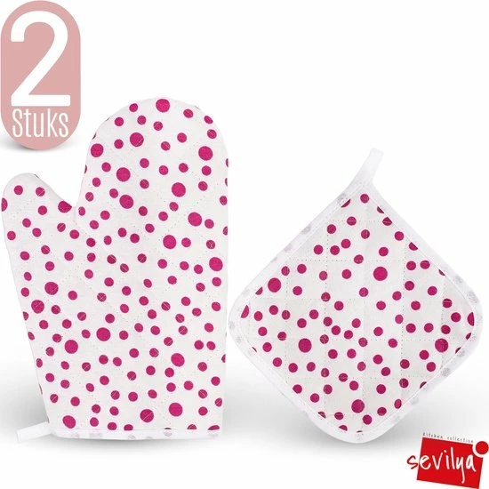 Het pakket bevat 1 keukenhandschoen en 1 pannenlap.