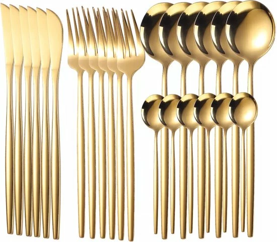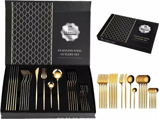 Samen zijn, goede wijn en lekker eten, dat zijn de betere herinneringen die we in het leven kunnen maken. Dat is het geval tijdens de feestdagen, maar met de Gouden bestekset 6 persoons van Timmers Trading kun je nu elke dag je eigen feest creëren! Geniet van de duurzame bestekset met een hoge spiegelglans, trendy gouden look en matte afwerking. Verder is de 24 delige bestekset vaatwasserbestendig en vervaardigd van roestvrijstaal en is het ontworpen met het oog op comfort in de hand. Lees verder voor alle details en voordelen!