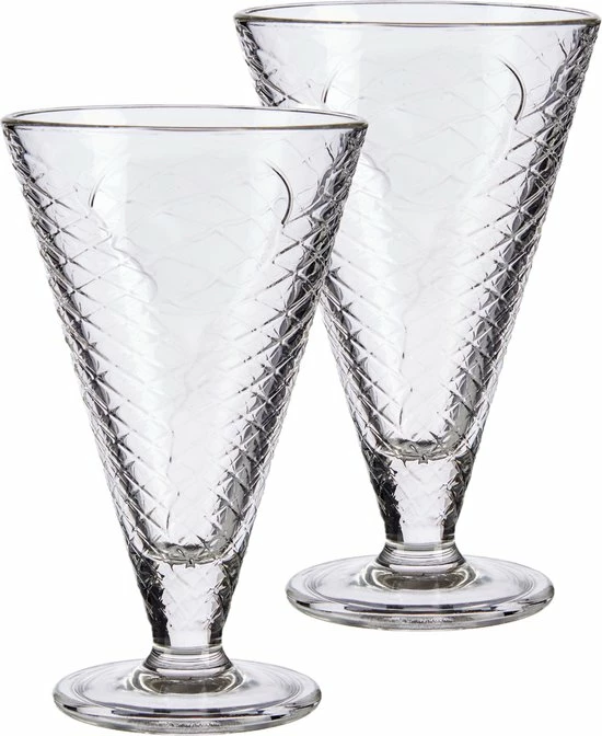 Set van 6x stuks ijscoupes/ijsschaaltjes 300 ml. Afmeting ca: 10 x 10 x 17 cm. Materiaal: gehard glas. Reinigen: vaatwasser geschikt.
